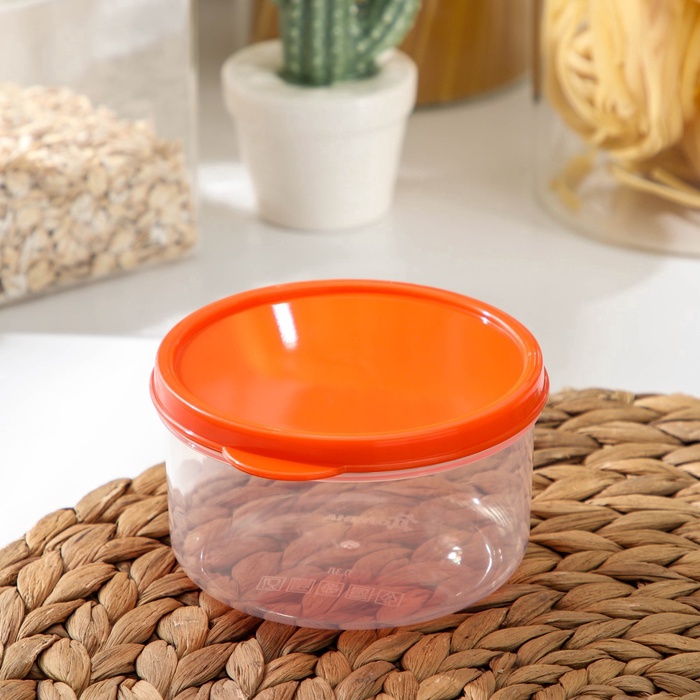- Оранжевая крышка — визуально отличает содержимое, не путается с другими, легко находится в стопке.