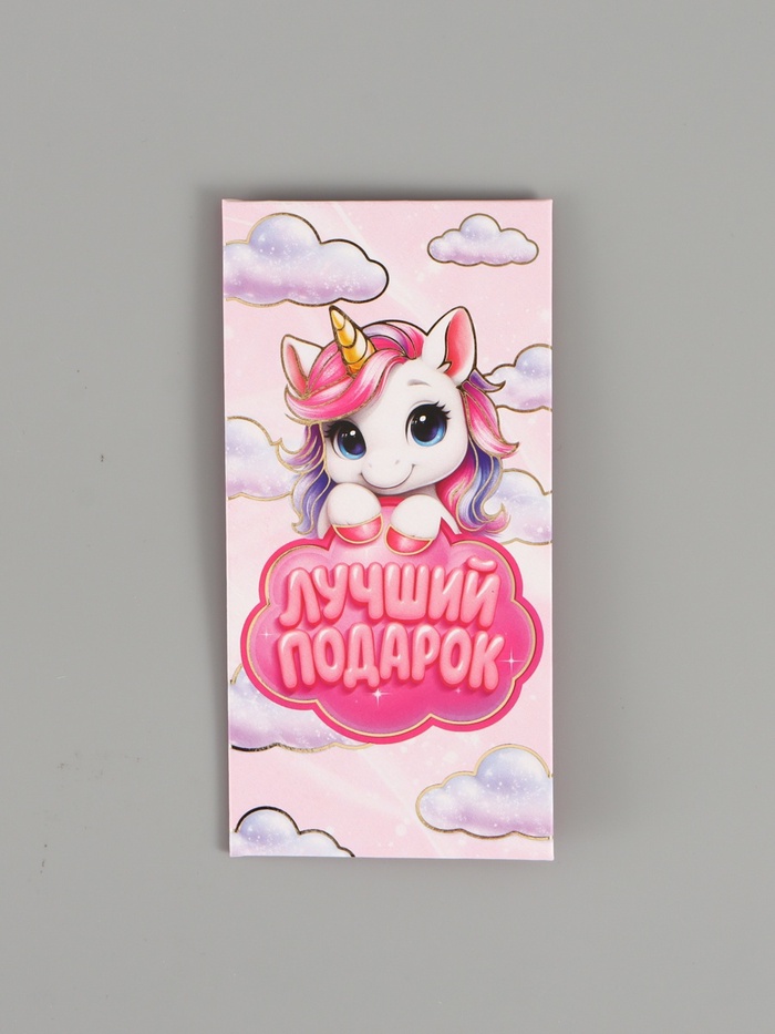 Конверт для денег «Лучший подарок», единорог, тиснение 16.5×8 см
