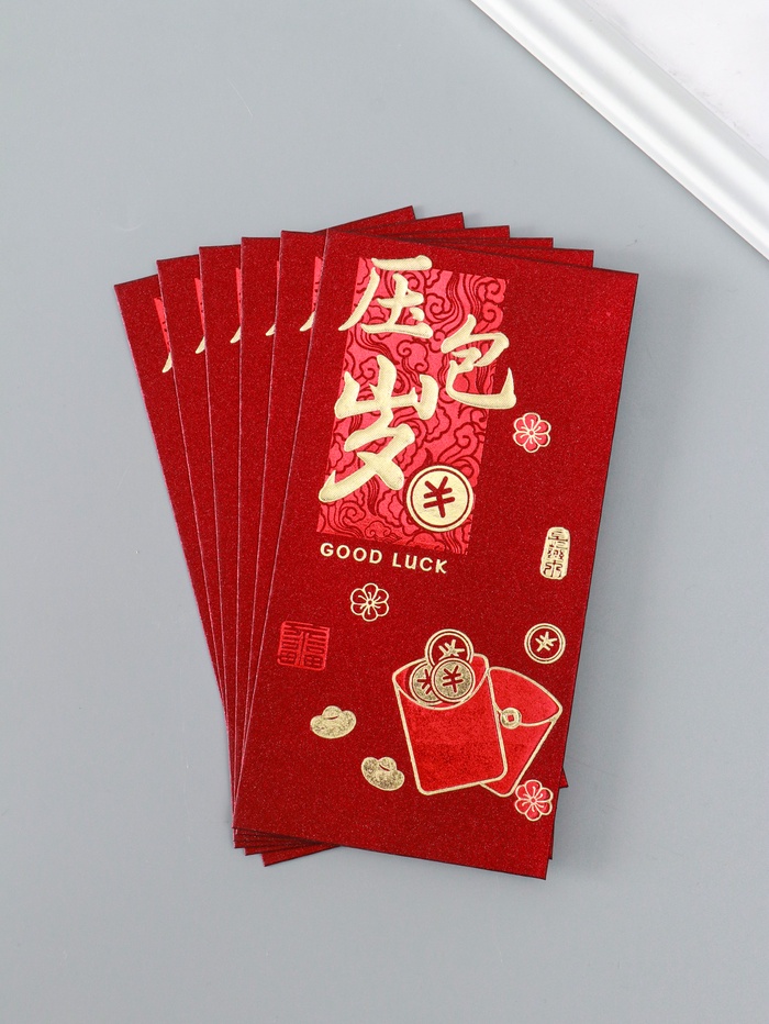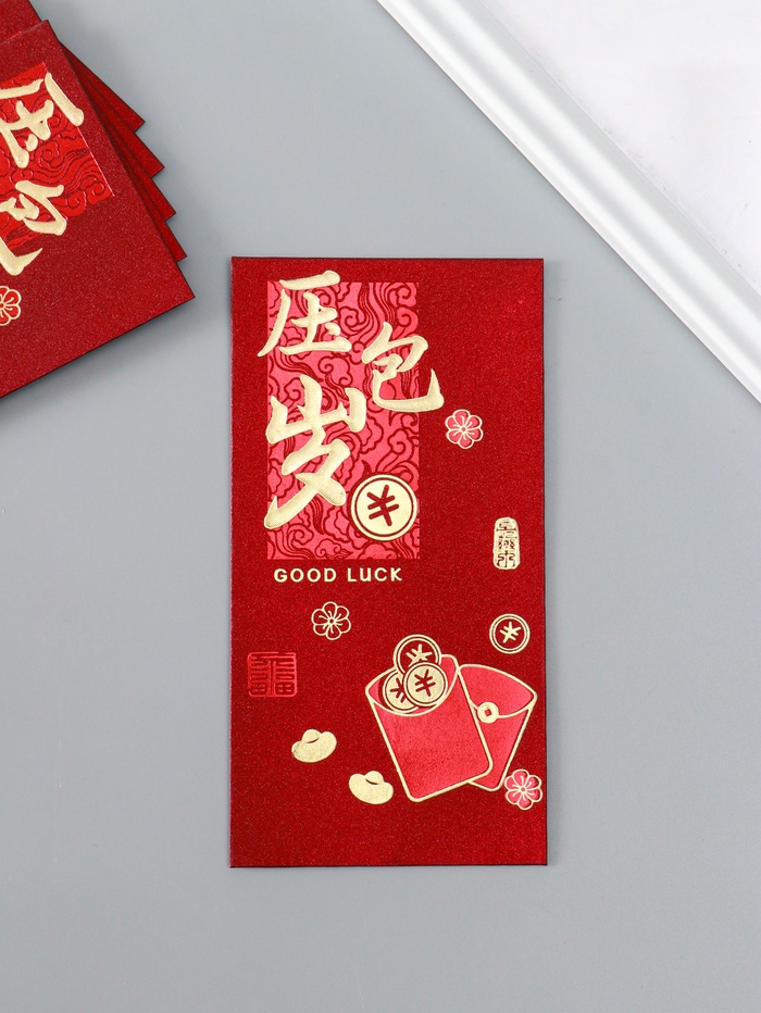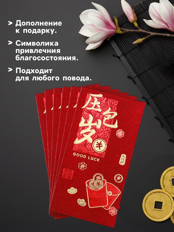 Конверт для денег подарочный «Пожелание удачи, богатства», набор 6 шт., бумага, тиснение блеск, 9×17 см