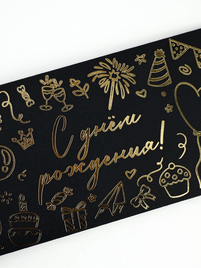 Конверт для денег «С днём рождения», 16.5×8 см, тиснение, чёрный крафт