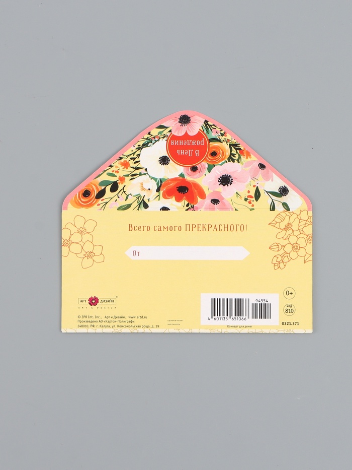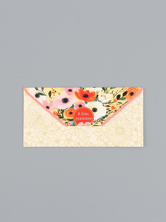 Конверт для денег «С днём рождения», цветы на жёлтом, 16,5 х 8 см