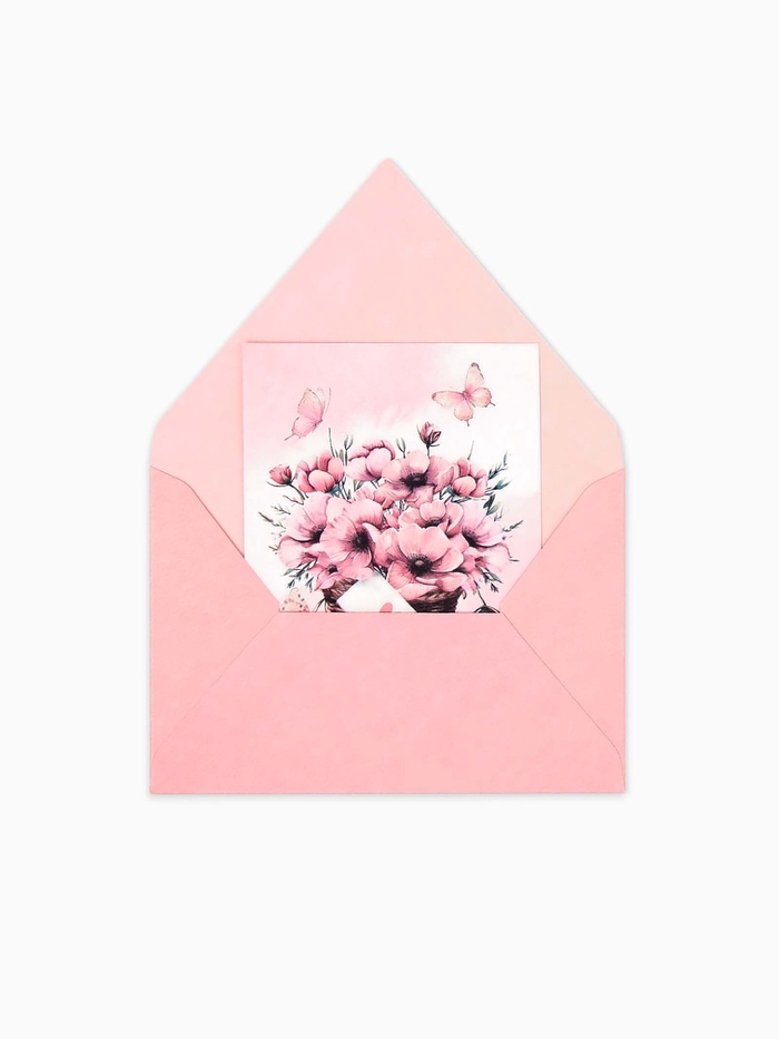 Конверт для денег с открыткой и наклейкой «Нежные цветы», тиснение, акварельный картон, 16 х 11 см