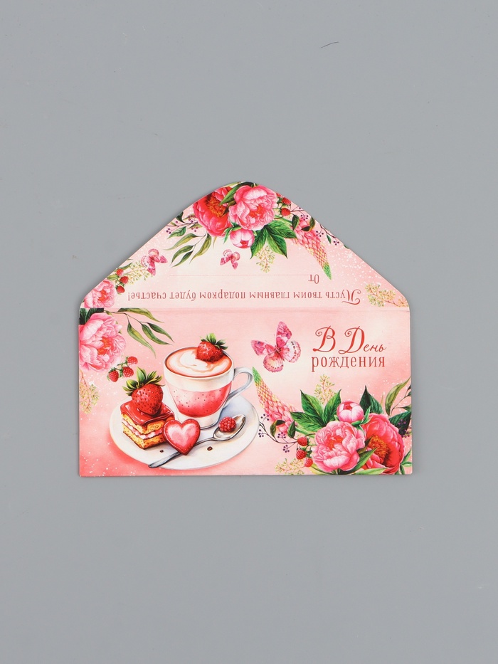 Конверт для денег «В День Рождения!», клубника, 16,5 х 8 см