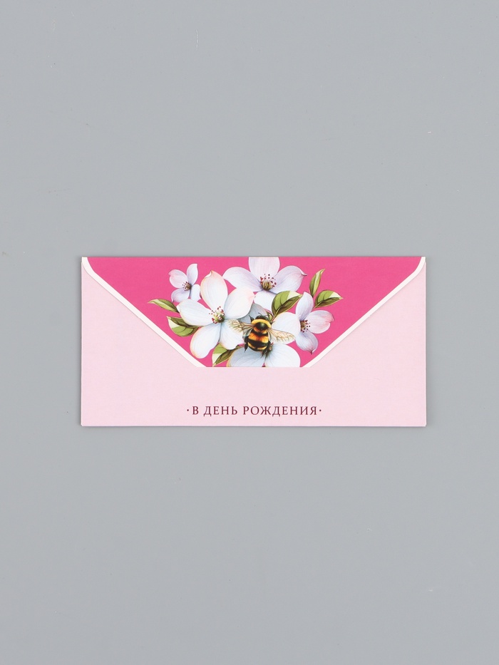Конверт для денег «В день рождения», шмель, 16,5 х 8 см