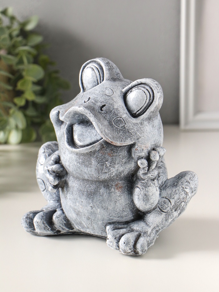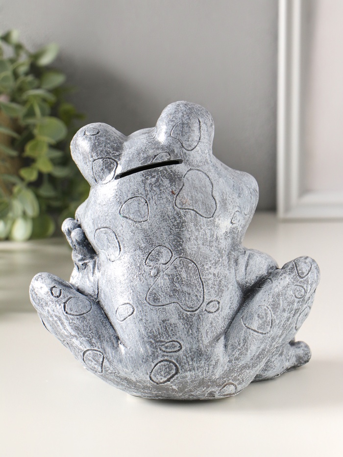 Копилка полистоун "Лягушонок" высота 16 см, серый камень
