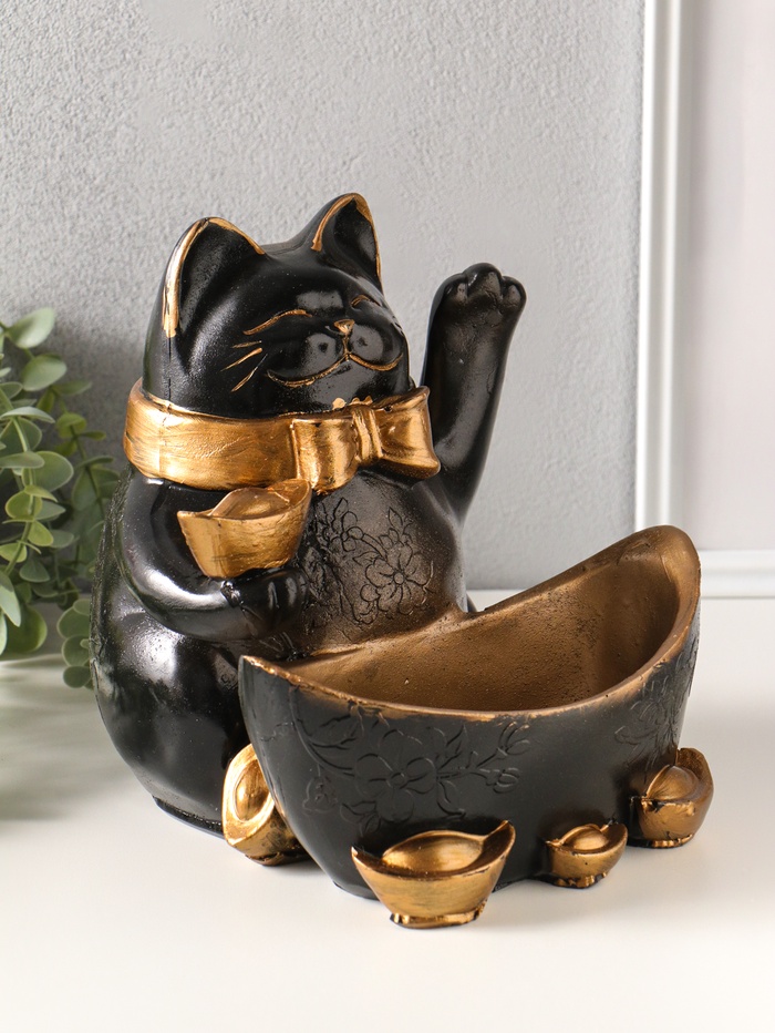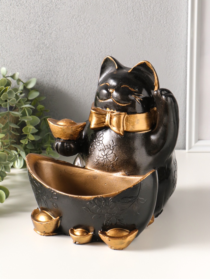 Копилка полистоун с подставкой для мелочей "Кот Манэки-Нэко" 24х21х25 см