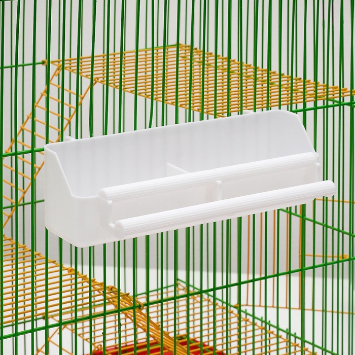 В данную емкость можно засыпать корм или налить воду на Ваше усмотрение. Изделие легко крепится при помощи двух пластиковых крючков в любом месте клетки. Миска идеально подойдет для средних и маленьких птиц: попугайчиков, амадинов, канареек, неразлучников, волнистиков. Кормушка выполнена из прочного и нетоксичного глянцевого пластика, а потому - совершенно безвредна для пернатых питомцев.