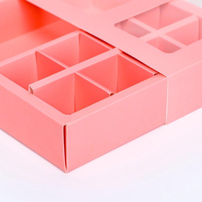 Размер ячеек: для шоколада 17,5 х 6,8 см; конфеты 3,5 х 3,5 см.