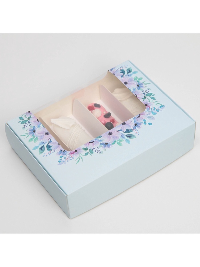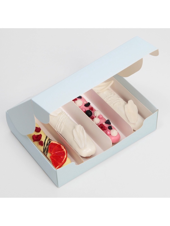 Коробка для эклеров, кондитерская упаковка, 4 вкладыша, «Фиалки», 20×15×5 см
