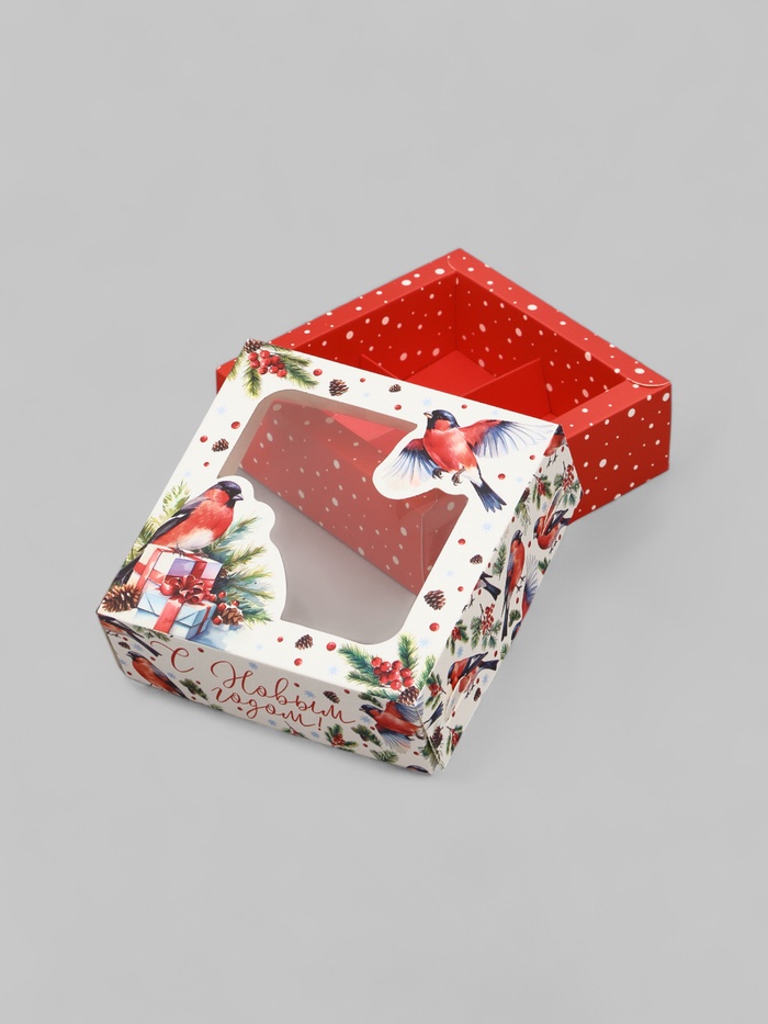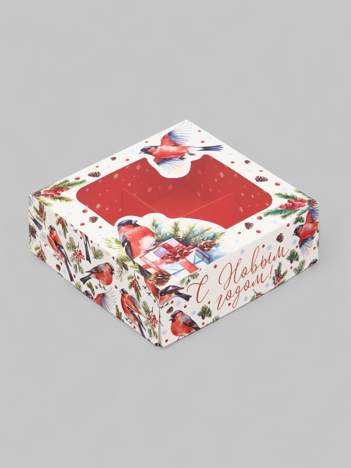 Коробка под 4 конфеты новогодняя «Снегири», 10.5×10.5×3.5 см