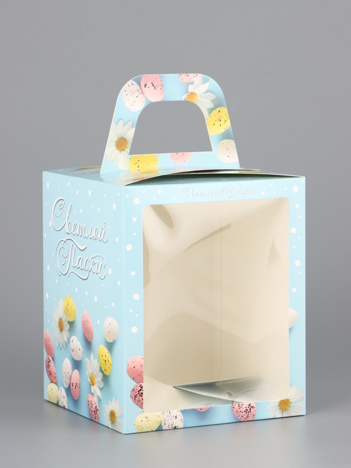 Небесная лёгкость для светлого праздника. Пасхальная коробка с дизайном «Небесная голубая» — это упаковка, которая передаёт ощущение весенней чистоты и торжественности. Её светлый дизайн и аккуратный размер делают её идеальной для изящных и символичных подарков.