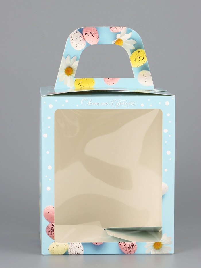 - Окно для демонстрации праздничного сюрприза: Прозрачная вставка позволяет показать содержимое, делая акцент на самом подарке. Это может быть крашеное яйцо, маленький кулич, праздничный десерт или украшение.