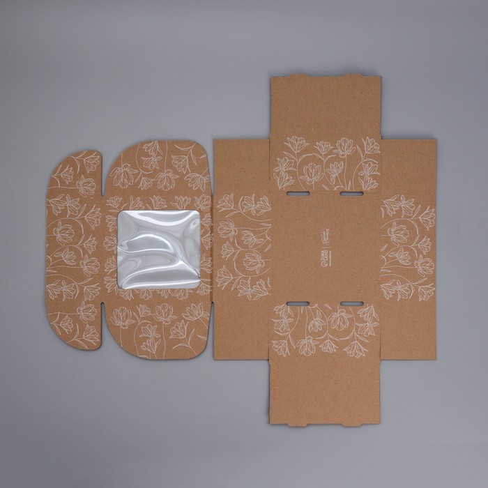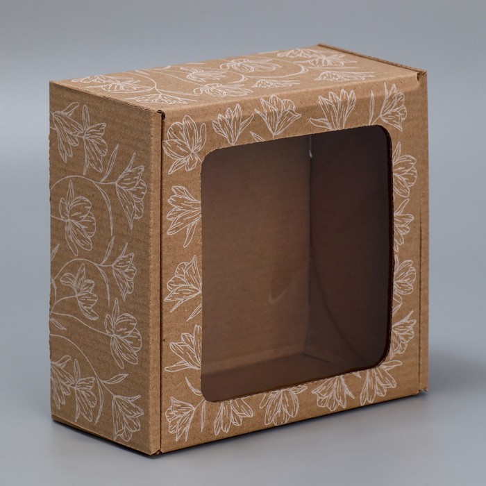 Коробка подарочная сборная с окном, упаковка, «Цветы», бурый, 16 х 8 х 16 см