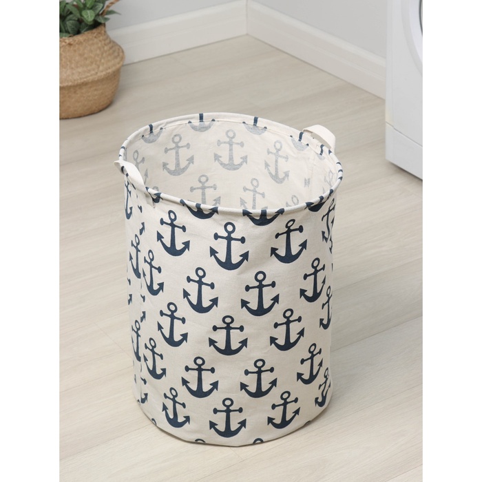 Корзина для белья Доляна «Якорь» — стильный и практичный аксессуар для детской комнаты или ванной. Цилиндрическая форма 40×40×48.5 см с морским принтом создает атмосферу приключений. Изготовлена из прочного текстиля с удобными ручками для переноски.
