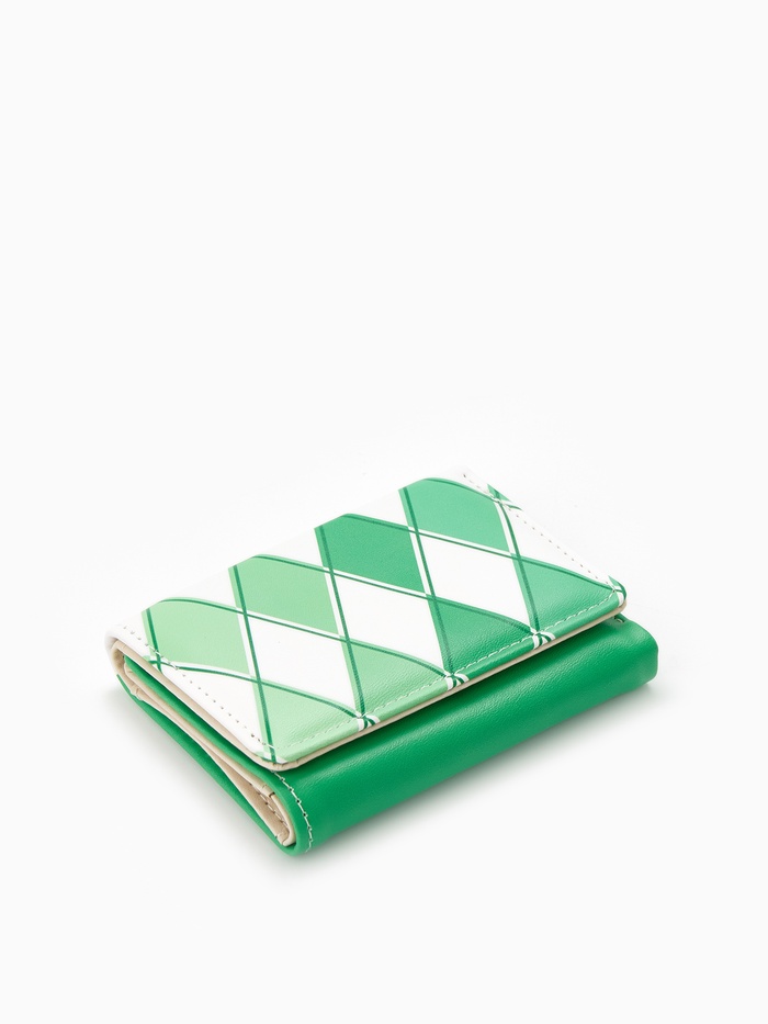 Этот зелёный клатч с клеткой — лаконичный аксессуар для тех, кто ценит стиль без лишних деталей. Он легко помещается в ладони, но вмещает всё необходимое: карточки, ключи и телефон. Мягкая искусственная кожа приятна на ощупь, а надёжная кнопка обеспечивает безопасность содержимого. Идеальный спутник для вечернего выхода, деловой встречи или прогулки, когда нужна только самая суть.