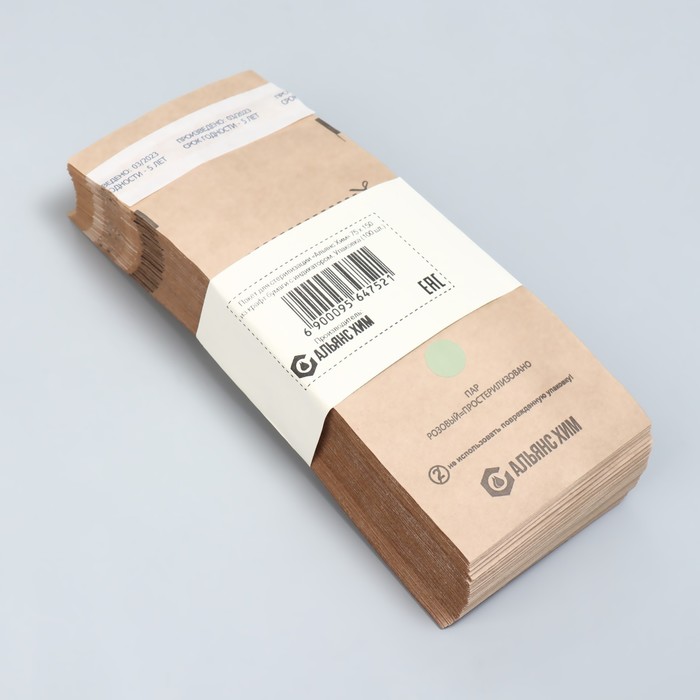 Набор из 100 прочных крафт-пакетов надолго обеспечит мастера гигиеничными инструментами.