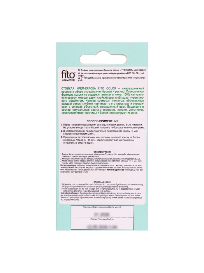 Стойкая крем-краска для бровей и ресниц Fito color, цвет графит (на 2 применения), 2х2 мл придаст волоскам насыщенный цвет.