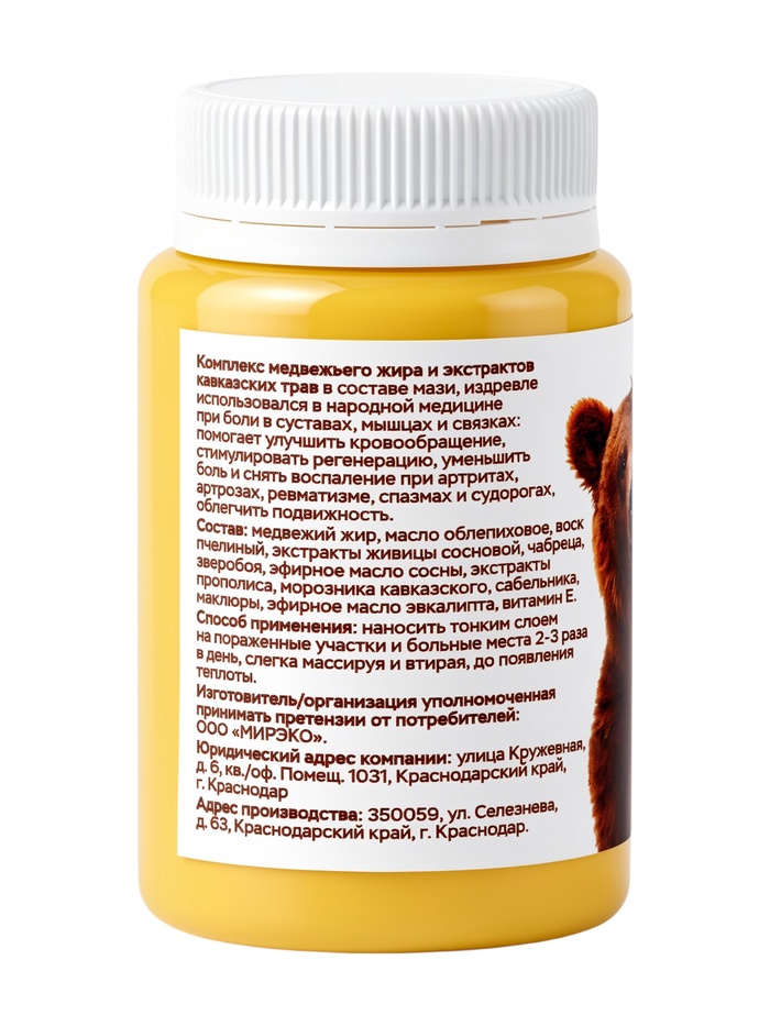 Крем-мазь медвежья «Природа кавказского долголетия», пластик, 100 мл