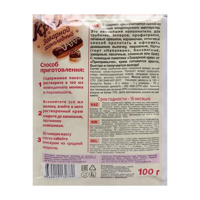 Заварной крем считается одной из основ кондитерского мастерства. Это нежнейший наполнитель для трубочек, эклеров, профитролей, печеных орешков, корзиночек, отличный способ пропитать и оформить домашнюю выпечку, пирожные, торты (торт «Наполеон», бисквитные, заварные, песочные, слоеные или безе). С помощью пакетика «Заварной крем» от «Приправыча», крем готовится просто, быстро и получается всегда!