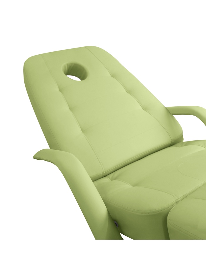 Косметологическая обивка Люкс 2 — в данной модели, в ее головной части имеется отверстие для лица (с заглушкой в комплекте). Обивка имеет увеличенную толщину 11 см и плотность по всей длине ложа, наполнитель специальный поролон средней жесткости. Покрытие обивки, матовая, не скользящая, высококачественная, износостойкая, «дышащая» экокожа производство Турции (50000 циклов, 100% PU полиуретан). Ширина ложа 64 см, длина 180 см. Съемные подлокотники. Косметологическое кресло «АТЛЕТ»