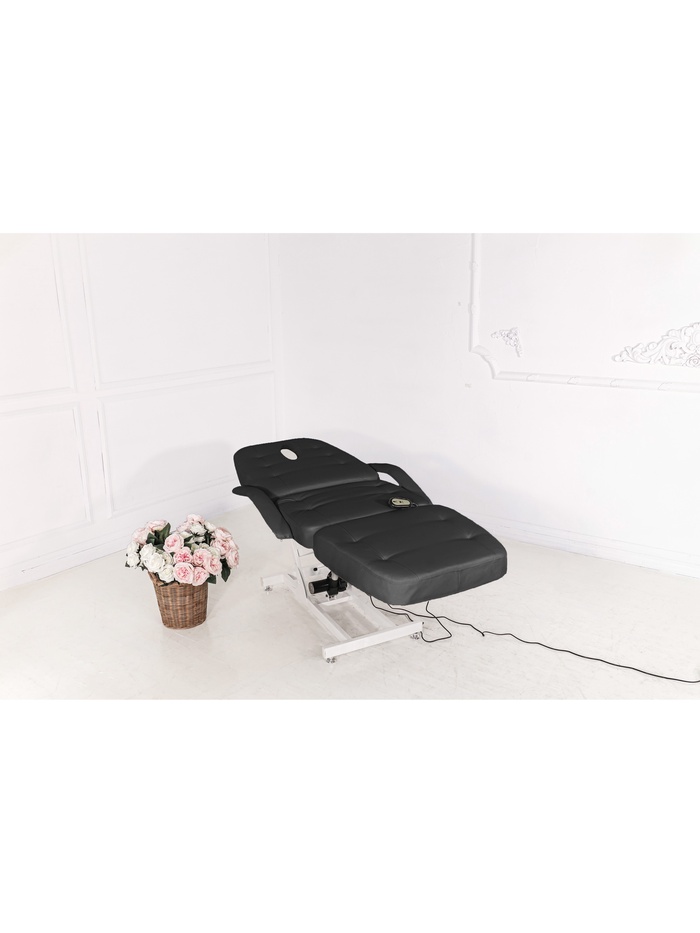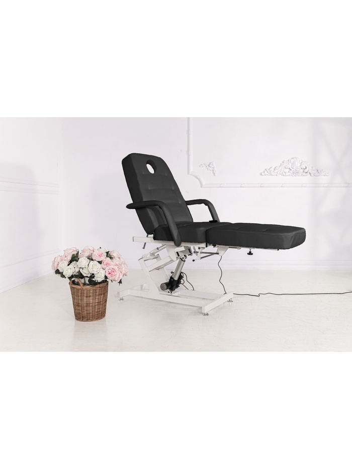 Кресло оснащено одним электроприводом для регулировки высоты. Наклон спинки и ножной части регулируется механически, позволяя точно подстраивать положение под процедуры и особенности клиента.