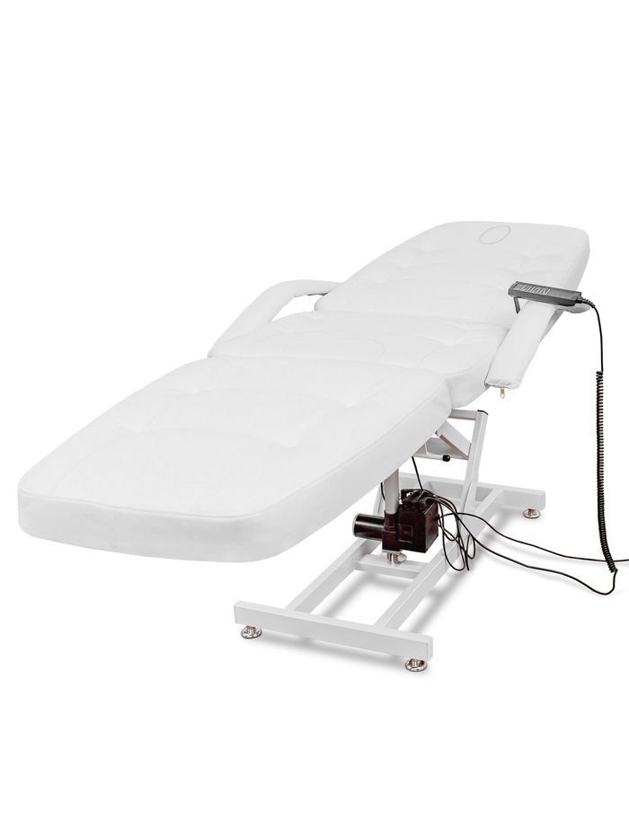 Модель оснащена двумя электроприводами, отвечающими за регулировку высоты и наклона спинки. Ножная часть регулируется механически, позволяя точно подстроить положение под клиента и процедуру.