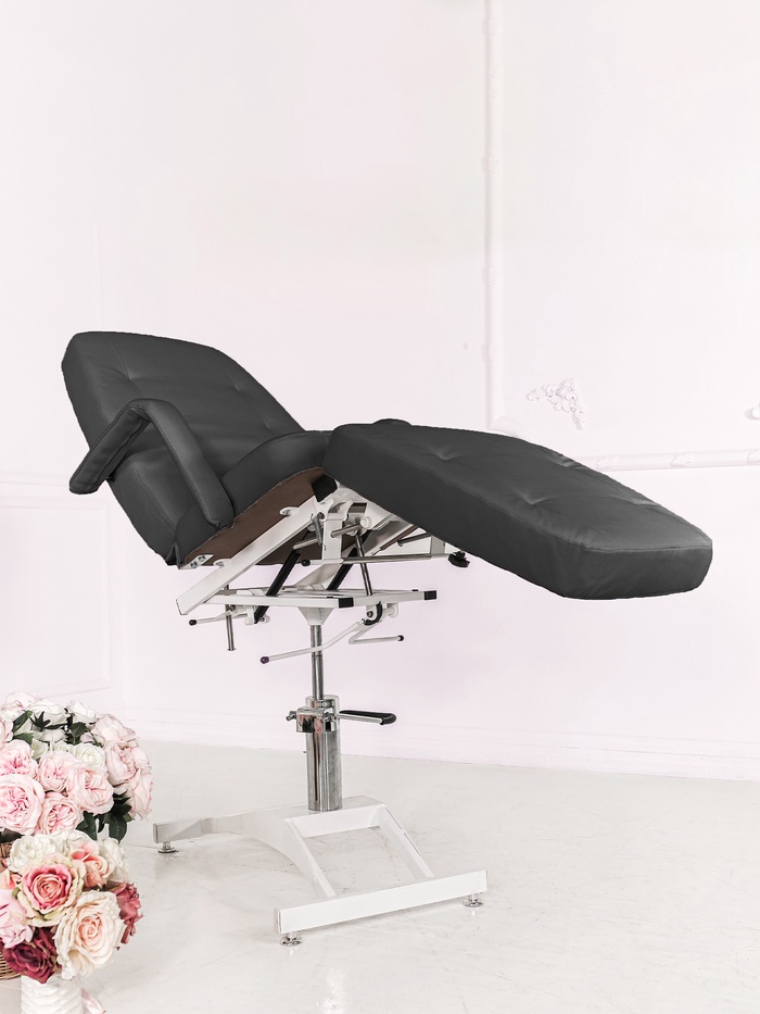 Механическая регулировка ножной части расширяет возможности позиционирования клиента, а усиленные металлические держатели и винтовые соединения повышают прочность конструкции. Кресло выдерживает нагрузку до 200 кг, сохраняя стабильность даже при интенсивной эксплуатации.