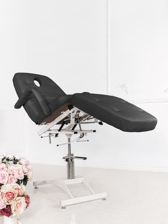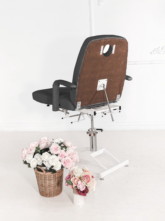 Механическая регулировка ножной части расширяет возможности позиционирования клиента, а усиленные металлические держатели и винтовые соединения повышают прочность конструкции. Кресло выдерживает нагрузку до 200 кг, сохраняя стабильность даже при интенсивной эксплуатации.