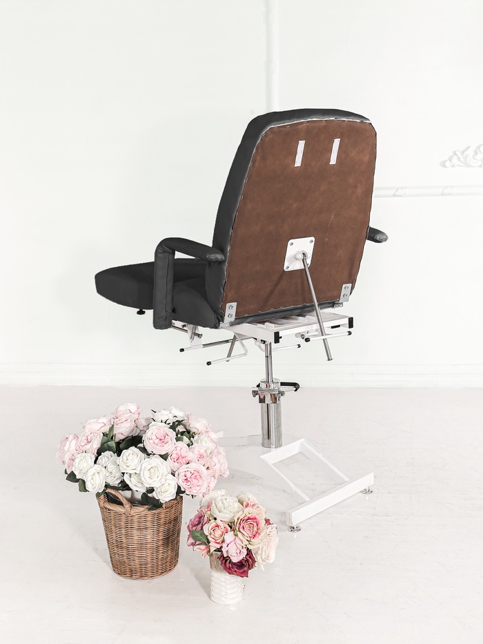 Механическая регулировка ножной части расширяет возможности позиционирования клиента, а усиленные металлические держатели и винтовые соединения повышают прочность конструкции. Кресло выдерживает нагрузку до 200 кг, сохраняя стабильность даже при интенсивной эксплуатации.