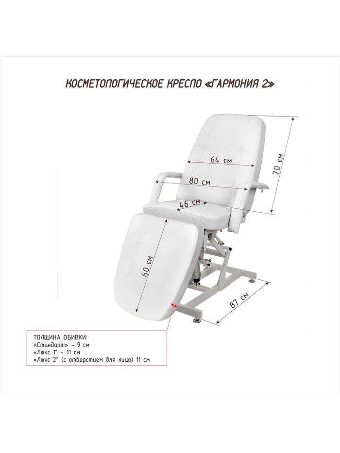 «Гармония-2» — это не просто косметологическое кресло, а надёжная основа для уверенной работы и стабильного результата.