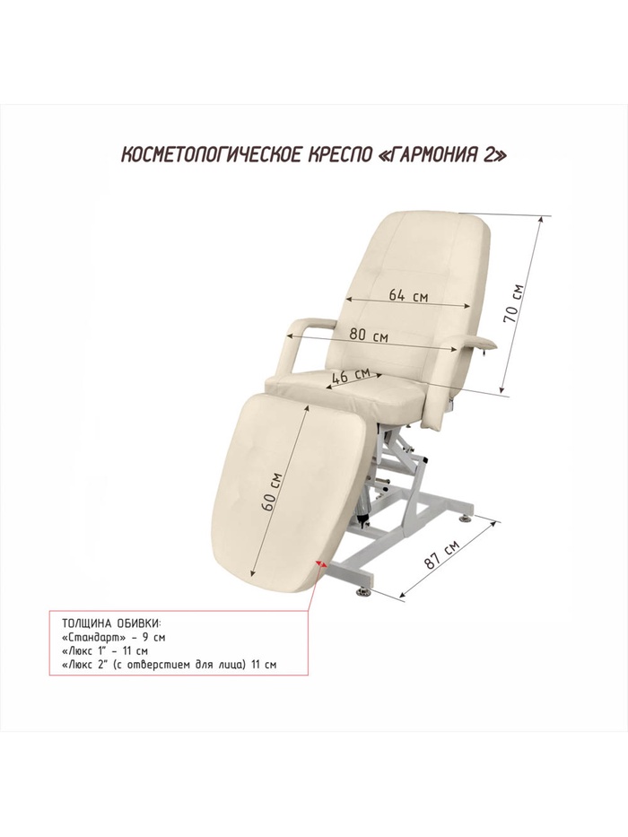 «Гармония-2» — это не просто косметологическое кресло, а надёжная основа для уверенной работы и стабильного результата.
