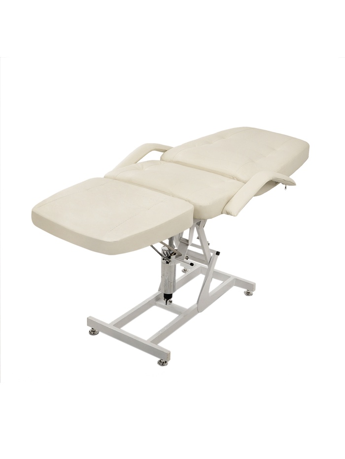 Косметологическая обивка СТАНДАРТ — обивка имеет одинаковую толщину 9 см и плотность по всей длине ложа, наполнитель специальный поролон средней жесткости. Покрытие обивки, не скользящая, высококачественная, износостойкая, «дышащая» экокожа производство Турции (50000 циклов, 100% PU полиуретан). Ширина ложа 64 см, длина 180 см. Съемные подлокотники. Косметологическое кресло «ГАРМОНИЯ-2» на гидравлике