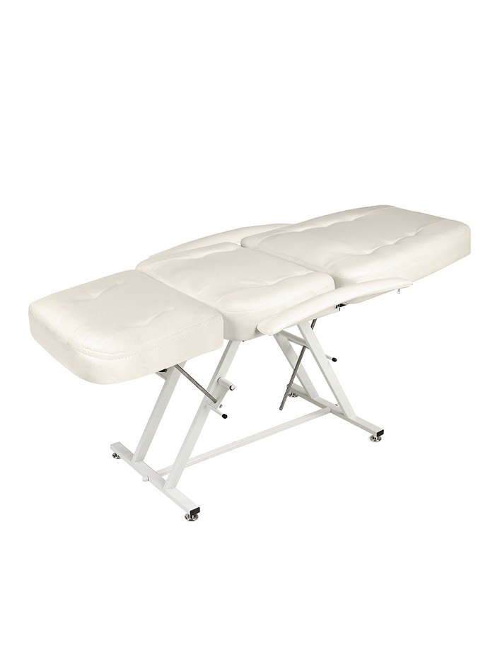 Механическая регулировка угла наклона спинки и ножной части позволяет точно настроить положение под процедуру и клиента. Стопорные механизмы фиксируют заданный угол, обеспечивая безопасность и удобство работы. Быстросъёмные складные подлокотники упрощают посадку клиента и расширяют возможности мастера.