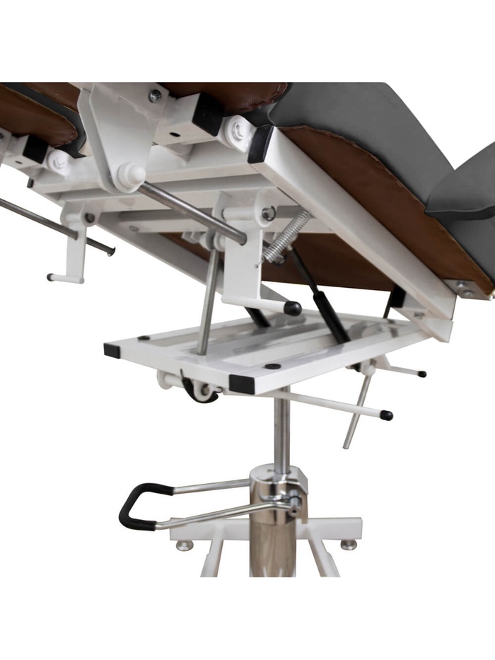 Сиденье поднимается до +15 см, а сиденье и ножные части могут быть выровнены в одну плоскость на высоте до 1,2 м. Это позволяет работать не только сидя, но и стоя, получая удобный доступ к стопе, голени и другим зонам ноги.