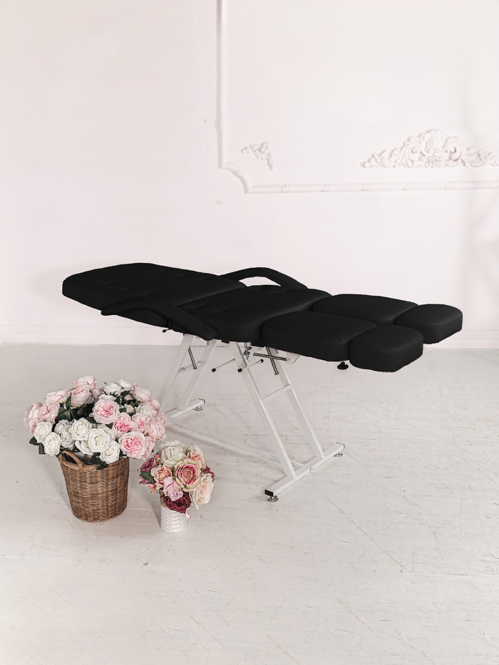 Сиденье поднимается до +15 см, а сиденье и ножные части могут быть выровнены в одну плоскость на высоте до 1,2 м. Это позволяет работать не только сидя, но и стоя, получая удобный доступ к стопе, голени и другим зонам ноги.