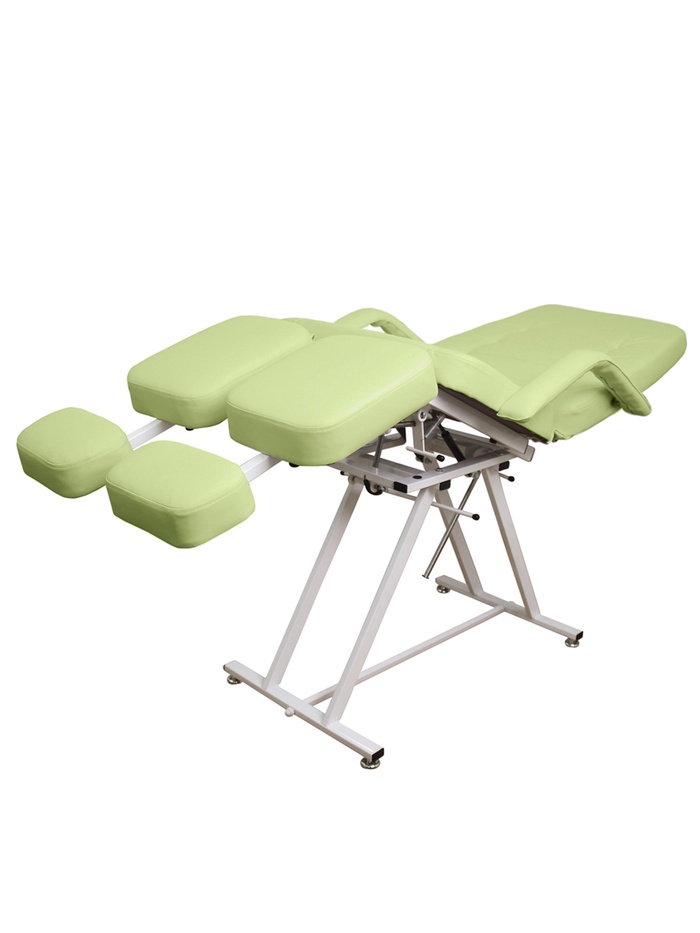 Сиденье поднимается до +15 см, а сиденье и ножные части могут быть выровнены в одну плоскость на высоте до 1,2 м. Это позволяет работать не только сидя, но и стоя, получая удобный доступ к стопе, голени и другим зонам ноги.