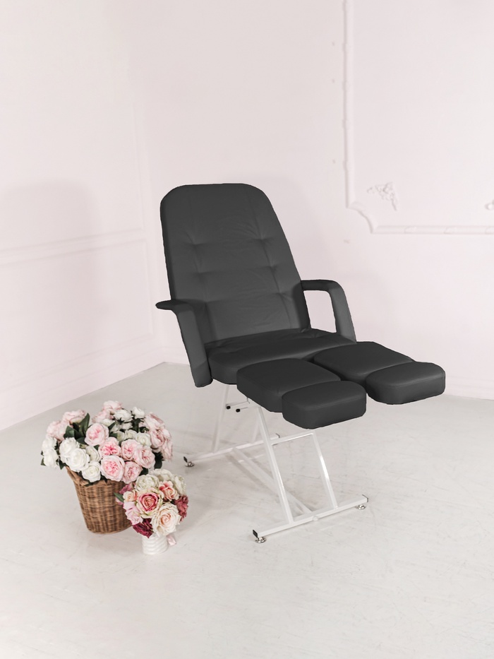 Покрытие не скользящая, высококачественная, износостойкая, «дышащая» экокожа производство Турции (50000 циклов, 100% РУ полиуретан). Ширина ложа 64 см, длина 185 см. Съемные подлокотники. Педикюрное кресло «Атлет»