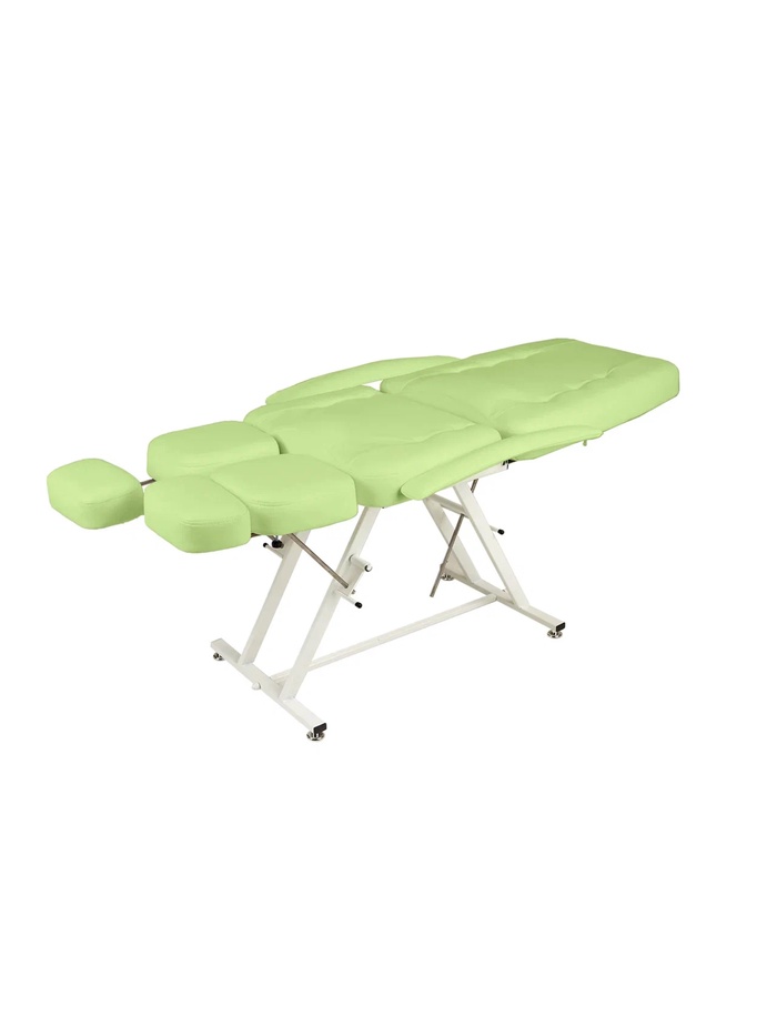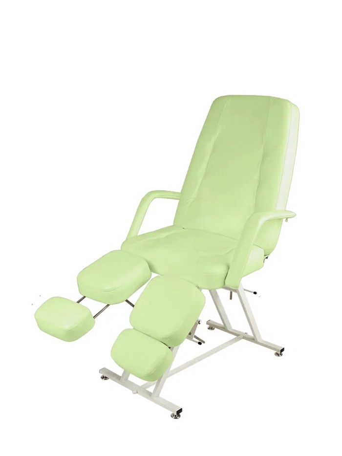 Функциональность продумана до мелочей. Высота сиденья составляет 69 см, что удобно для мастера. Спинка и ножная часть оснащены стопорными механизмами для точной регулировки и фиксации угла наклона. Ножная секция удлиняется на 15 см, а подъём ноги достигает 1,1 м, что обеспечивает удобный доступ к стопам и снижает нагрузку на мастера. Быстросъёмные складные подлокотники упрощают посадку клиента и ускоряют работу.