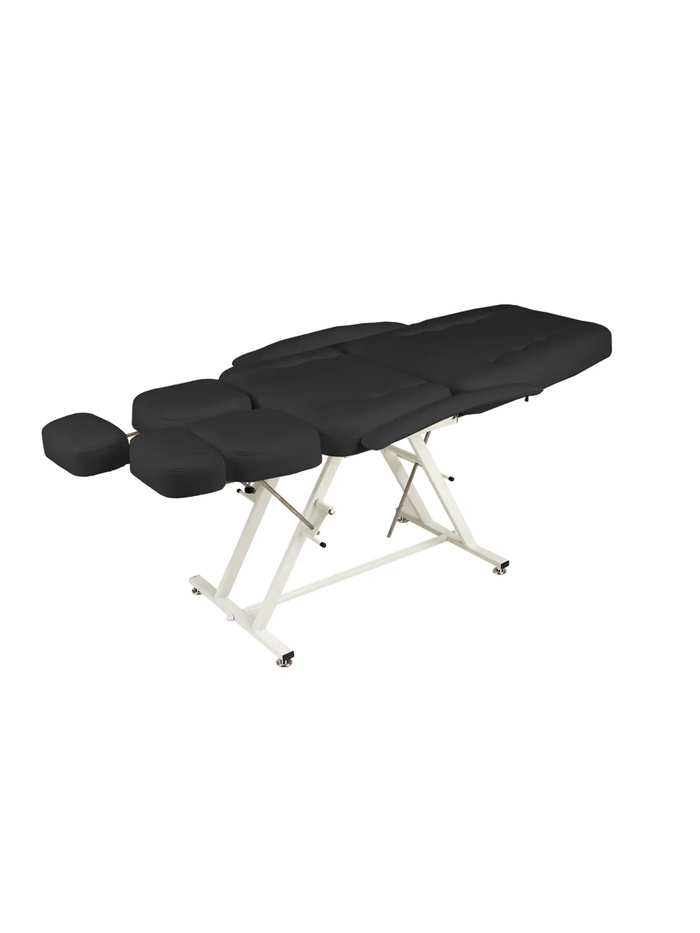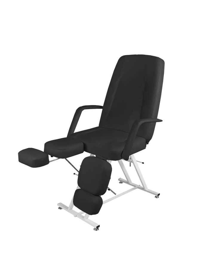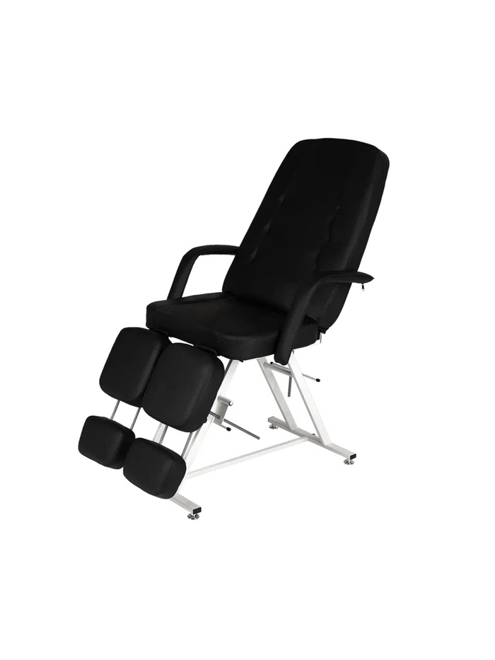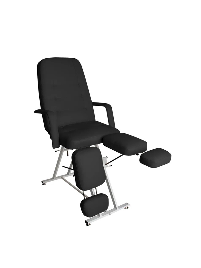 Ножные части оборудованы механизмами удлинения и фиксации, обеспечивающими подъём ноги на высоту до 1,1 м. Это открывает удобный доступ к зоне стопы и голени, снижая нагрузку на мастера и повышая комфорт клиента.