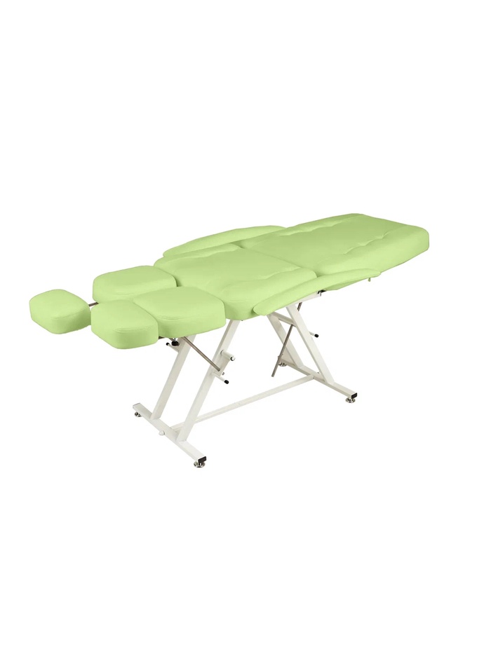Ножные части оборудованы механизмами удлинения и фиксации, обеспечивающими подъём ноги на высоту до 1,1 м. Это открывает удобный доступ к зоне стопы и голени, снижая нагрузку на мастера и повышая комфорт клиента.