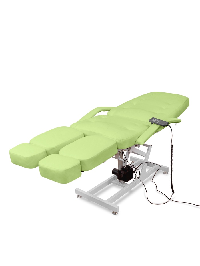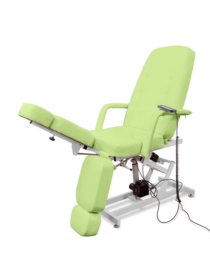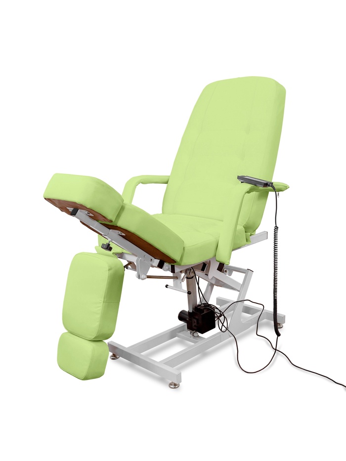 Кресло оснащено двумя электроприводами, которые отвечают за регулировку высоты и наклона спинки. Угол наклона спинки и ножных частей дополнительно регулируется механически, что позволяет точно адаптировать положение кресла под процедуру и анатомию клиента.
