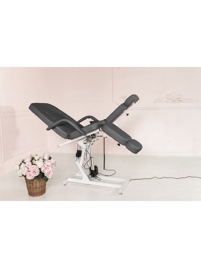 Кресло оснащено тремя электроприводами, позволяющими точно регулировать высоту, наклон спинки и подъём сиденья. Плавная настройка помогает быстро адаптировать положение под клиента и процедуру, сохраняя комфорт и правильную рабочую позу мастера.