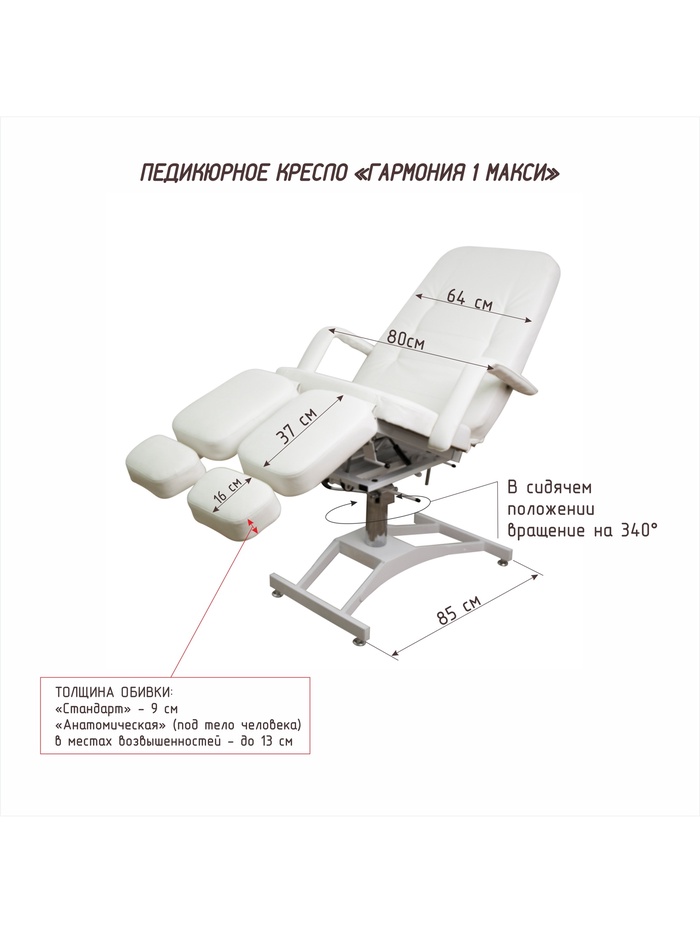 Кресло педикюрное «Гармония 1 МАКСИ» обивка стандарт, гидравлика, белое