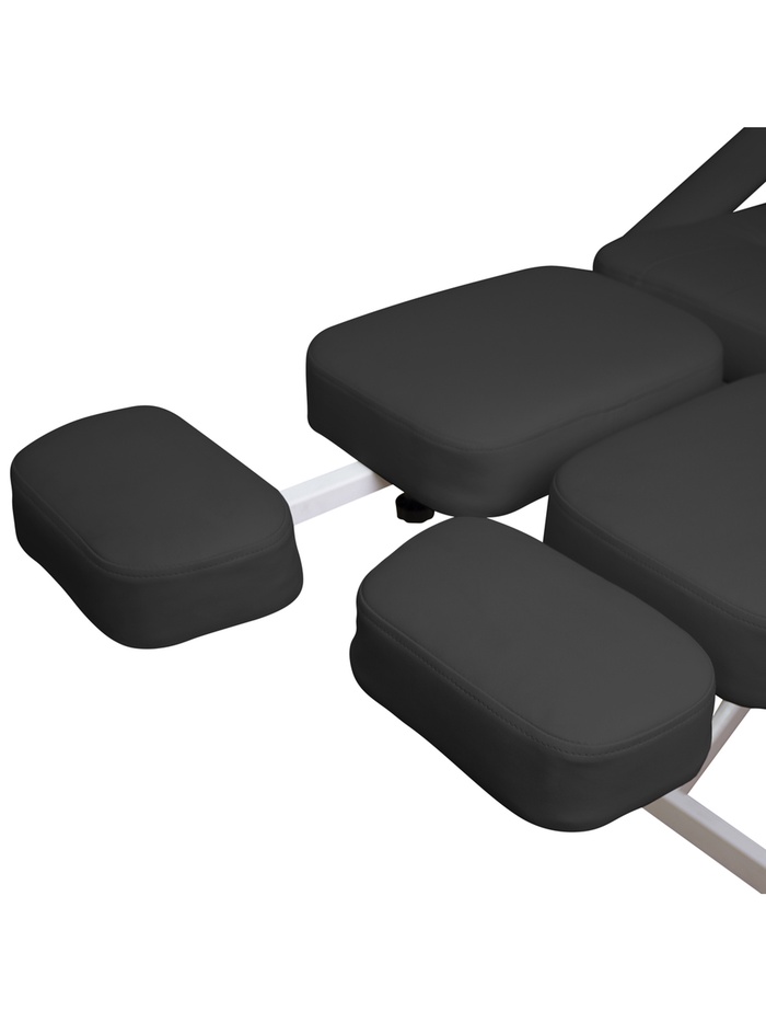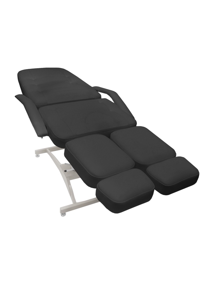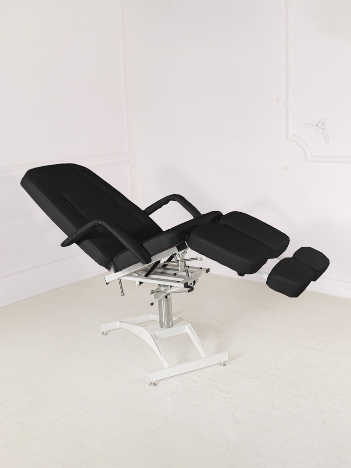 Кресло оснащено гидравлической регулировкой высоты (66–82 см), что позволяет точно настроить положение клиента под формат процедуры.