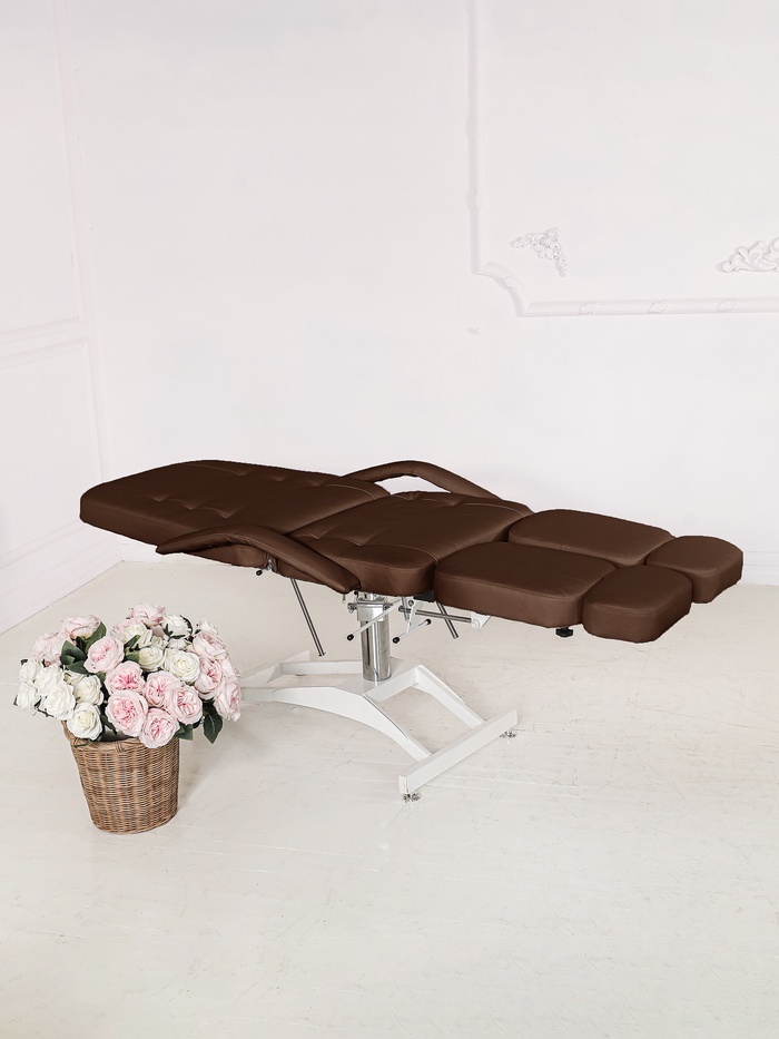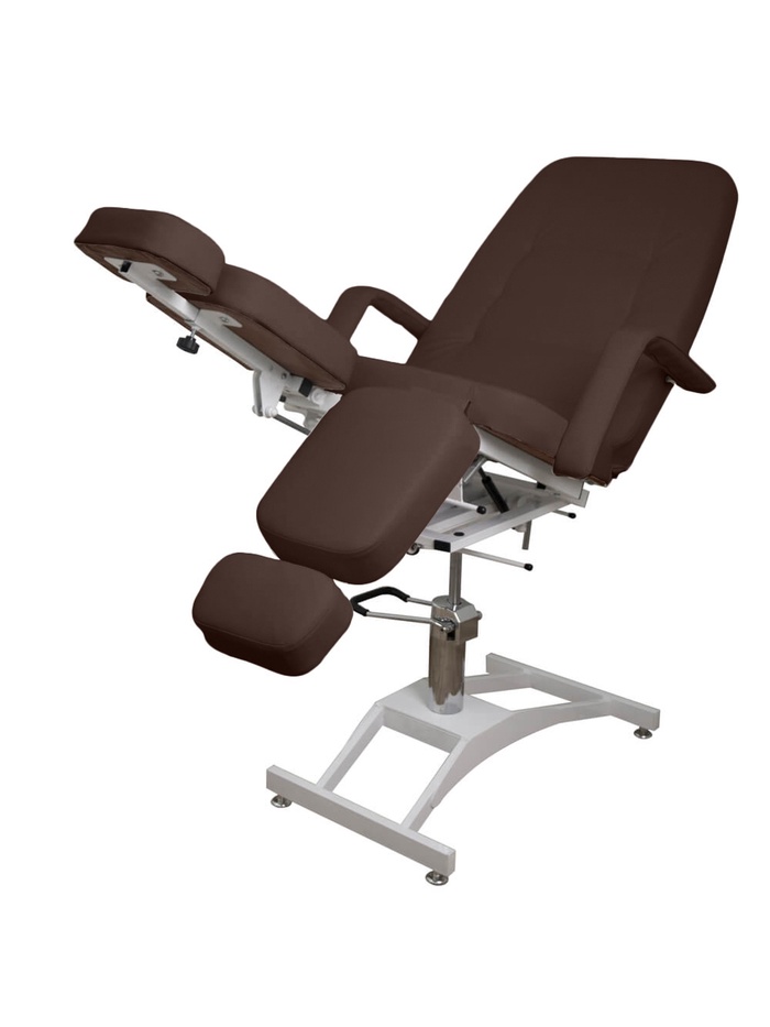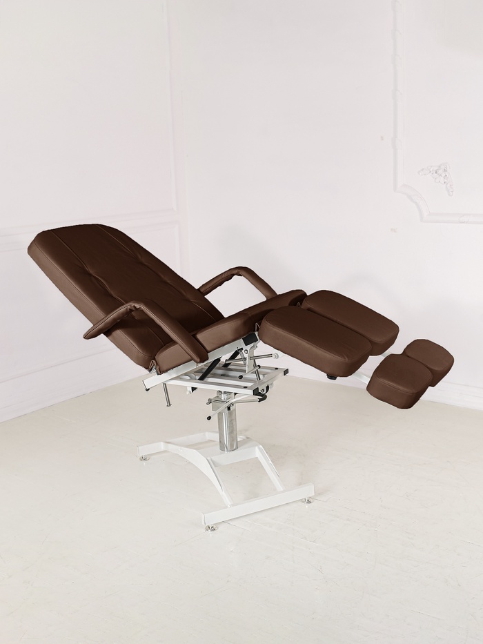 Кресло оснащено гидравлической регулировкой высоты (66–82 см), что позволяет точно настроить положение клиента под формат процедуры.