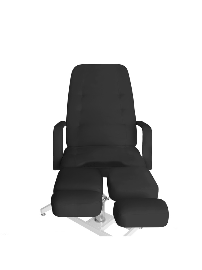 Обивка АНАТОМИЧЕСКАЯ — обивка повышенной комфортности (под тело человека), для длительного нахождения в кресле. Спинная часть и сиденье имеют в поясничной и паховой зонах возвышения. Возвышение в паховой зоне, в сидячем положении, позволяет человеку «не скатываться» вперед, а в поясничной части, осуществляет поддержку поясничной зоны мышц спины. Ножная часть оснащена механизмом удлинения (на 15 см). Покрытие обивки, не скользящая, высококачественная, износостойкая, «дышащая» экокожа производство Турции. Ширина ложа 64 см, длина 185 см, толщина от 9 до 12 см. Съемные подлокотники. Педикюрное кресло «Гармония 1»