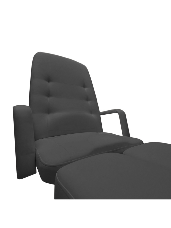 Обивка АНАТОМИЧЕСКАЯ — обивка повышенной комфортности (под тело человека), для длительного нахождения в кресле. Спинная часть и сиденье имеют в поясничной и паховой зонах возвышения. Возвышение в паховой зоне, в сидячем положении, позволяет человеку «не скатываться» вперед, а в поясничной части, осуществляет поддержку поясничной зоны мышц спины. Ножная часть оснащена механизмом удлинения (на 15 см). Покрытие обивки, не скользящая, высококачественная, износостойкая, «дышащая» экокожа производство Турции. Ширина ложа 64 см, длина 185 см, толщина от 9 до 12 см. Съемные подлокотники. Педикюрное кресло «Гармония 2»