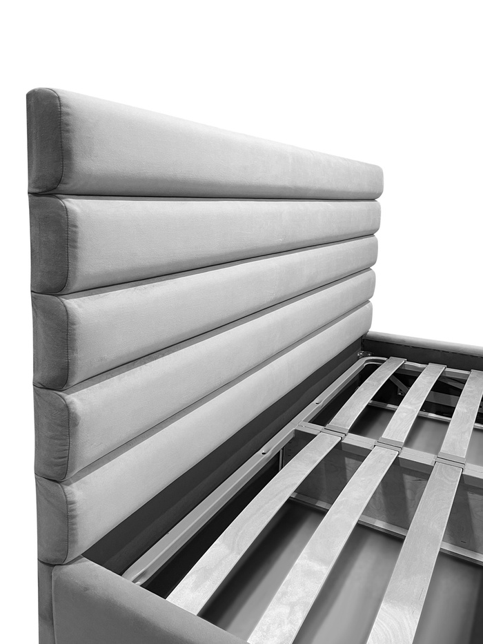 Ссовременная модель с мягким изголовьем и подъёмным механизмом. Мягкие элементы выполнены из высокоэластичного пенополиуретана. Декоративная отделка применяется только на изголовье.