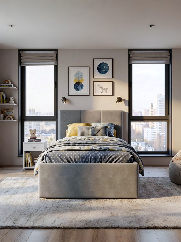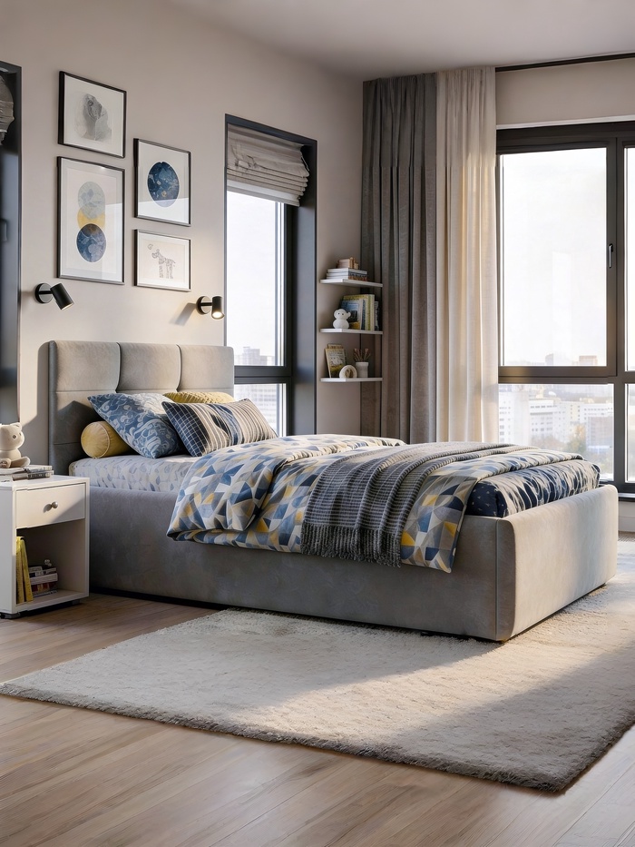 Кровать односпальная, спальное место 900×2000 мм, велюр, цвет серый