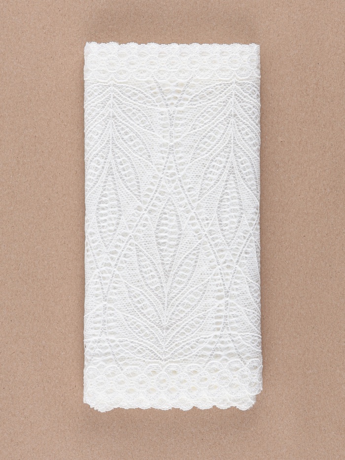 Эластичное кружевное полотно не имеет тканной основы. Благодаря своей пластичности кружево тянется, а переплетения нитей формируют воздушную выразительность.
